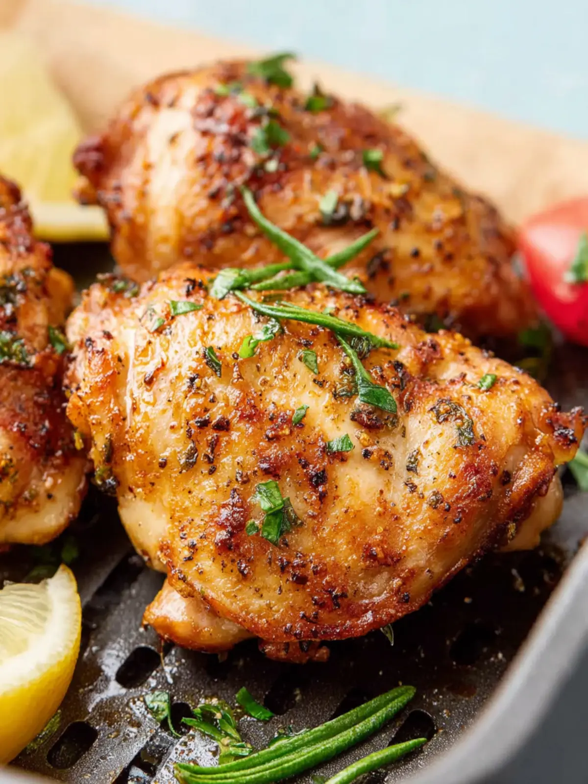 Juicy and flavorful air fryer boneless chicken thighs seasoned to perfection.