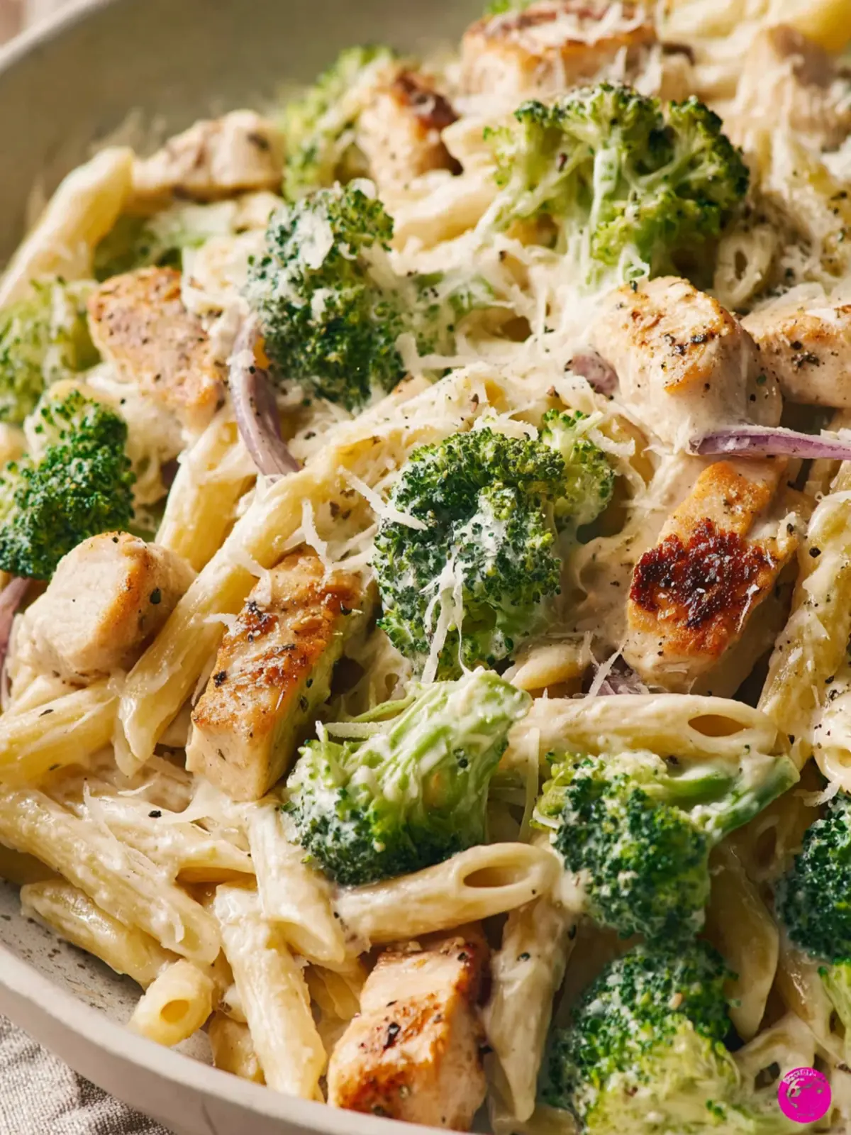 A delicious creamy chicken pasta dish with broccoli, perfect for a quick and satisfying meal.
