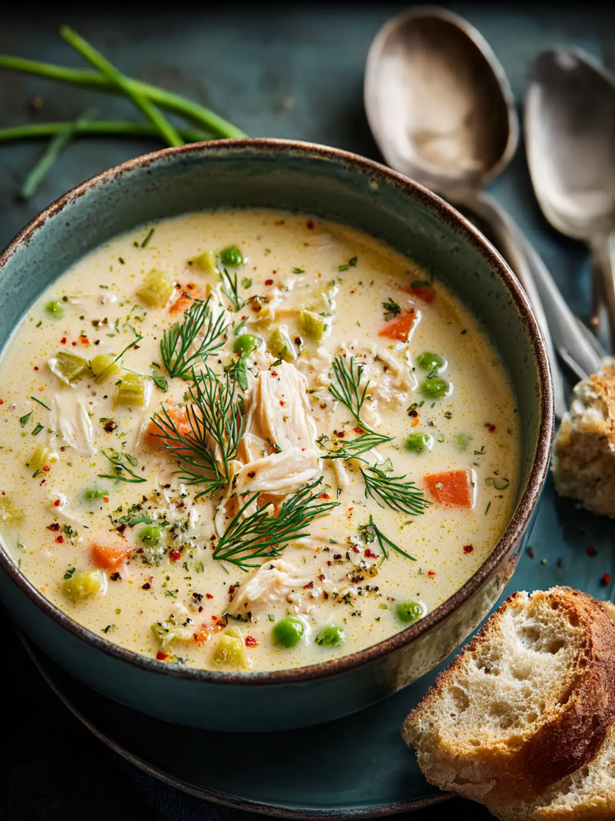 For a lighter take, brighten up your comforting creamy chicken soup with fresh lemon juice and dill. It’s refreshing and perfect for those warm days when you still want that cozy feeling.