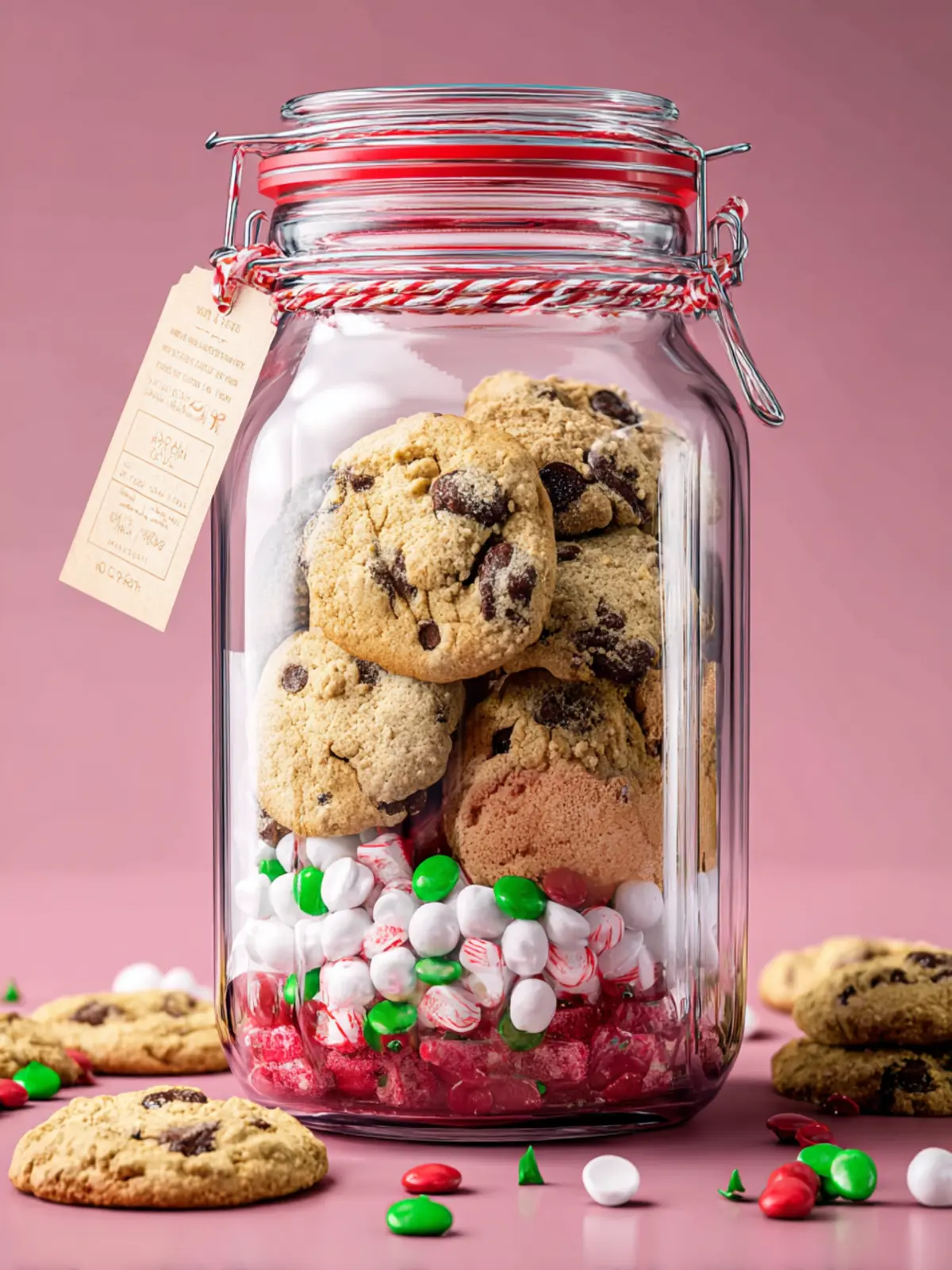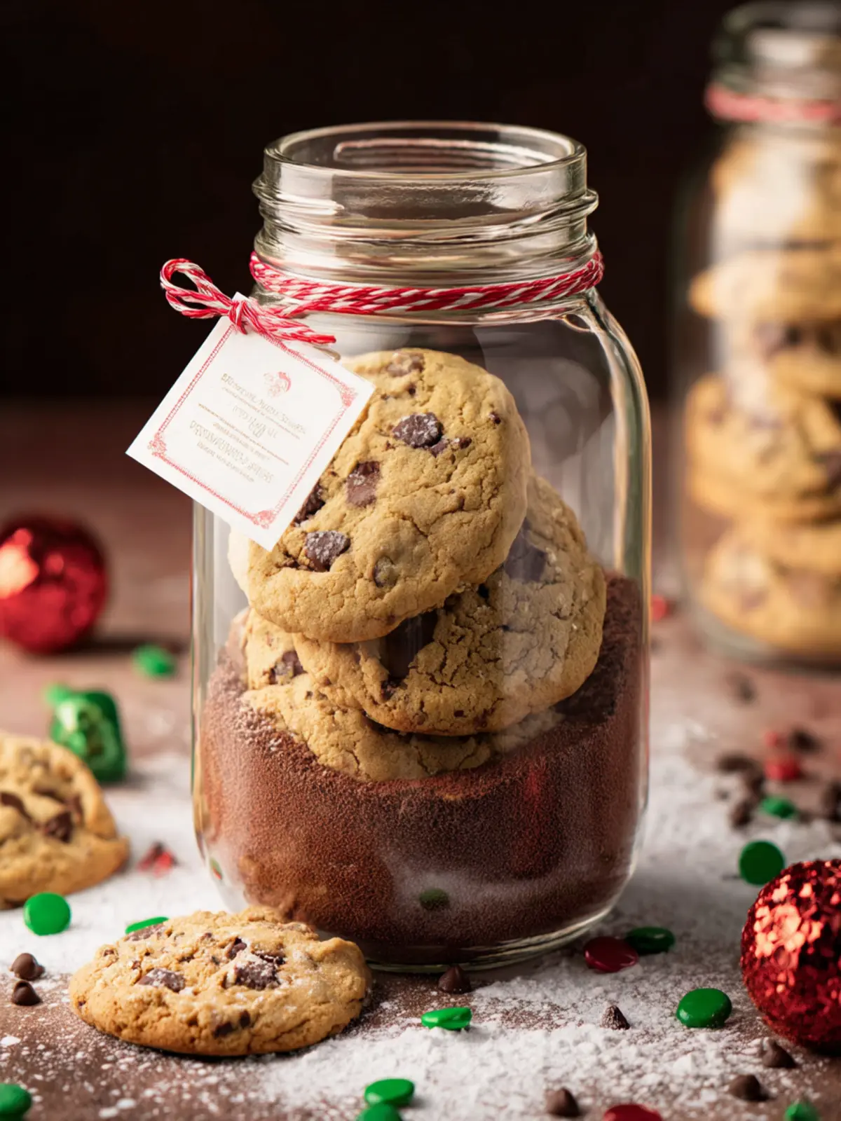 Holiday M&M Chocolate Chip Cookies in a Jar