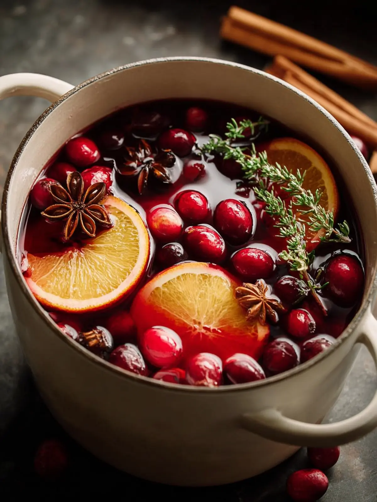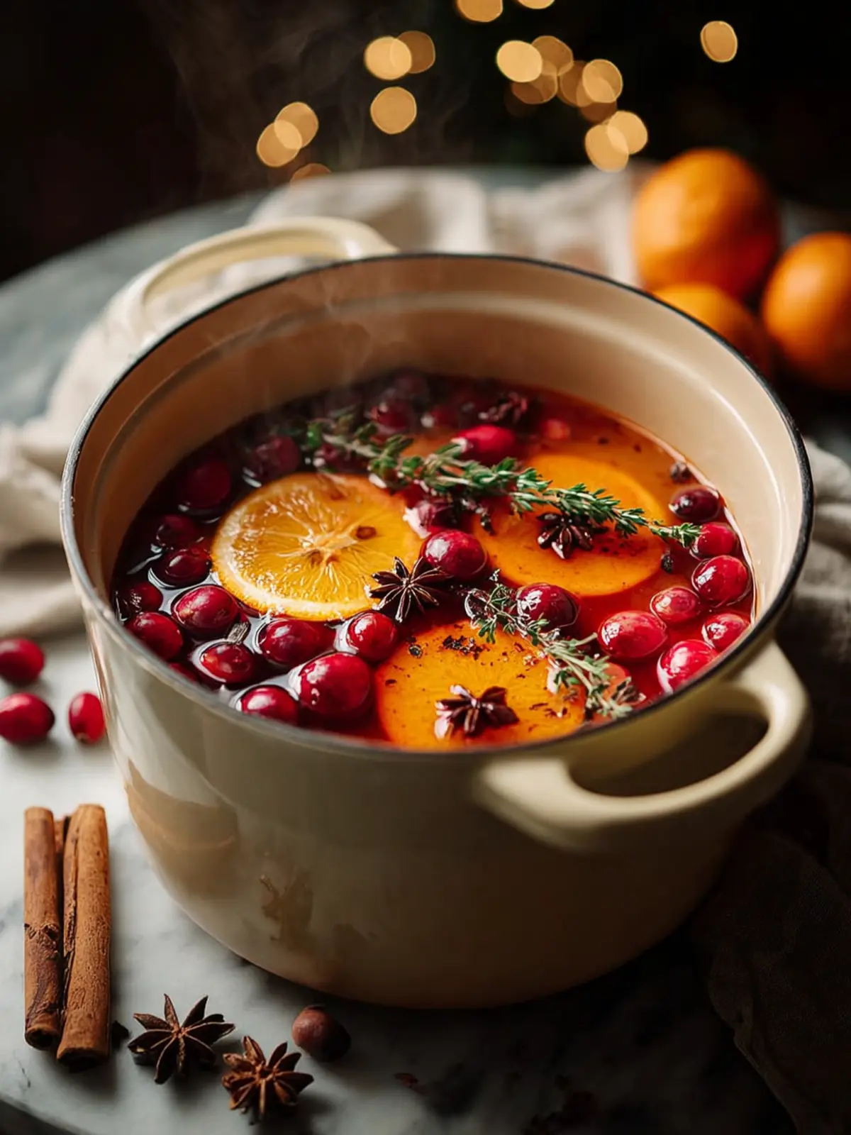 A delightful simmering recipe that combines the tartness of cranberries and the sweetness of orange, perfect for creating a cozy atmosphere.