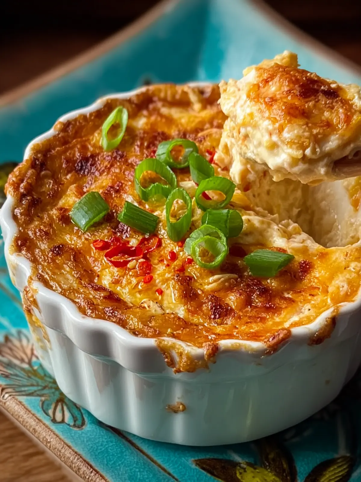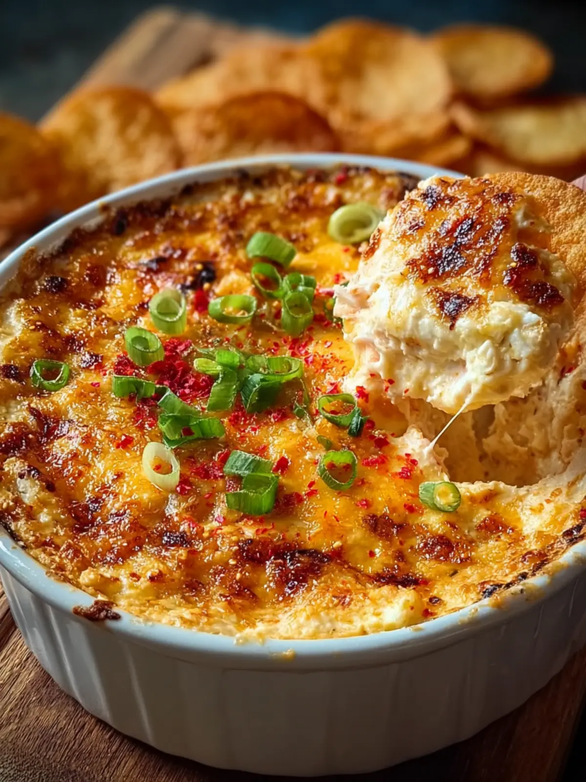 - Garnish and Serve – Remove from the oven and let it cool for about 5 minutes (this helps it set slightly and prevents burned tongues). Sprinkle with additional sliced green onions and a few sesame seeds if you like. Serve immediately with your choice of dippers arranged around the bowl.