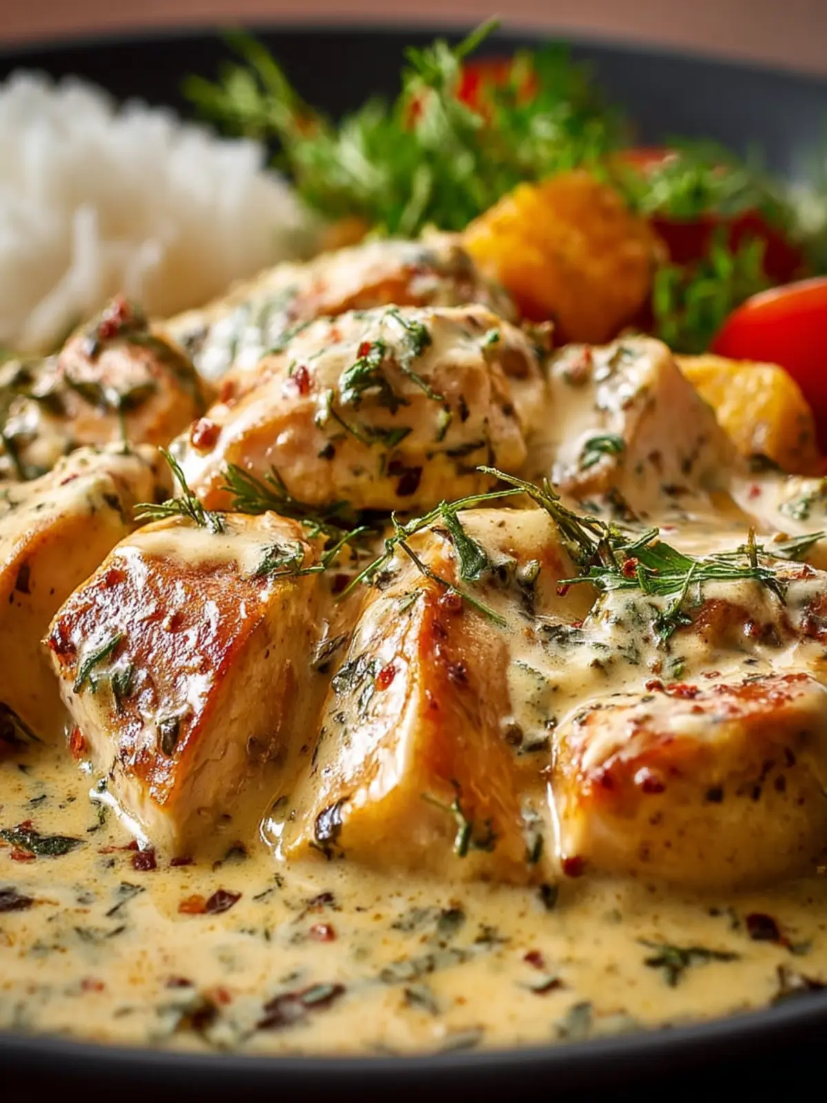 Croutons or Tortilla Chips: For added crunch, serve the creamy chicken alongside croutons or crushed tortilla chips, offering a delightful contrast in textures.