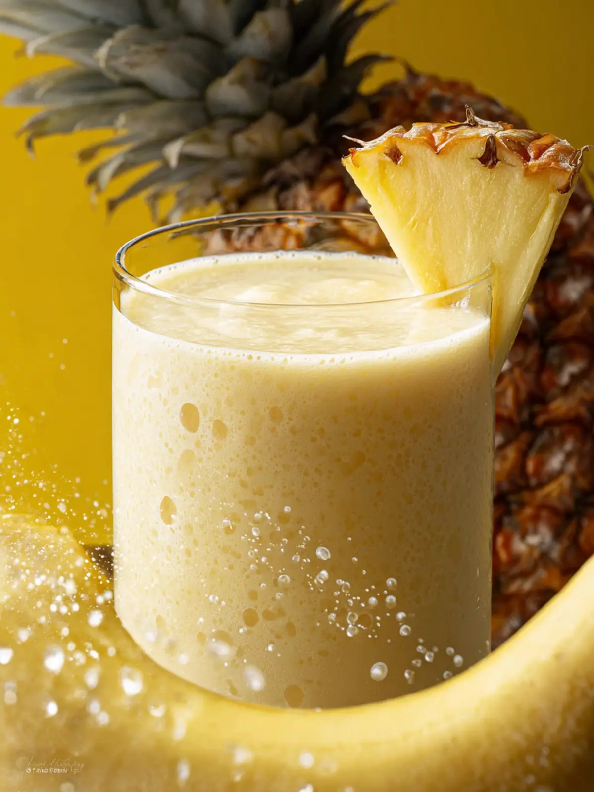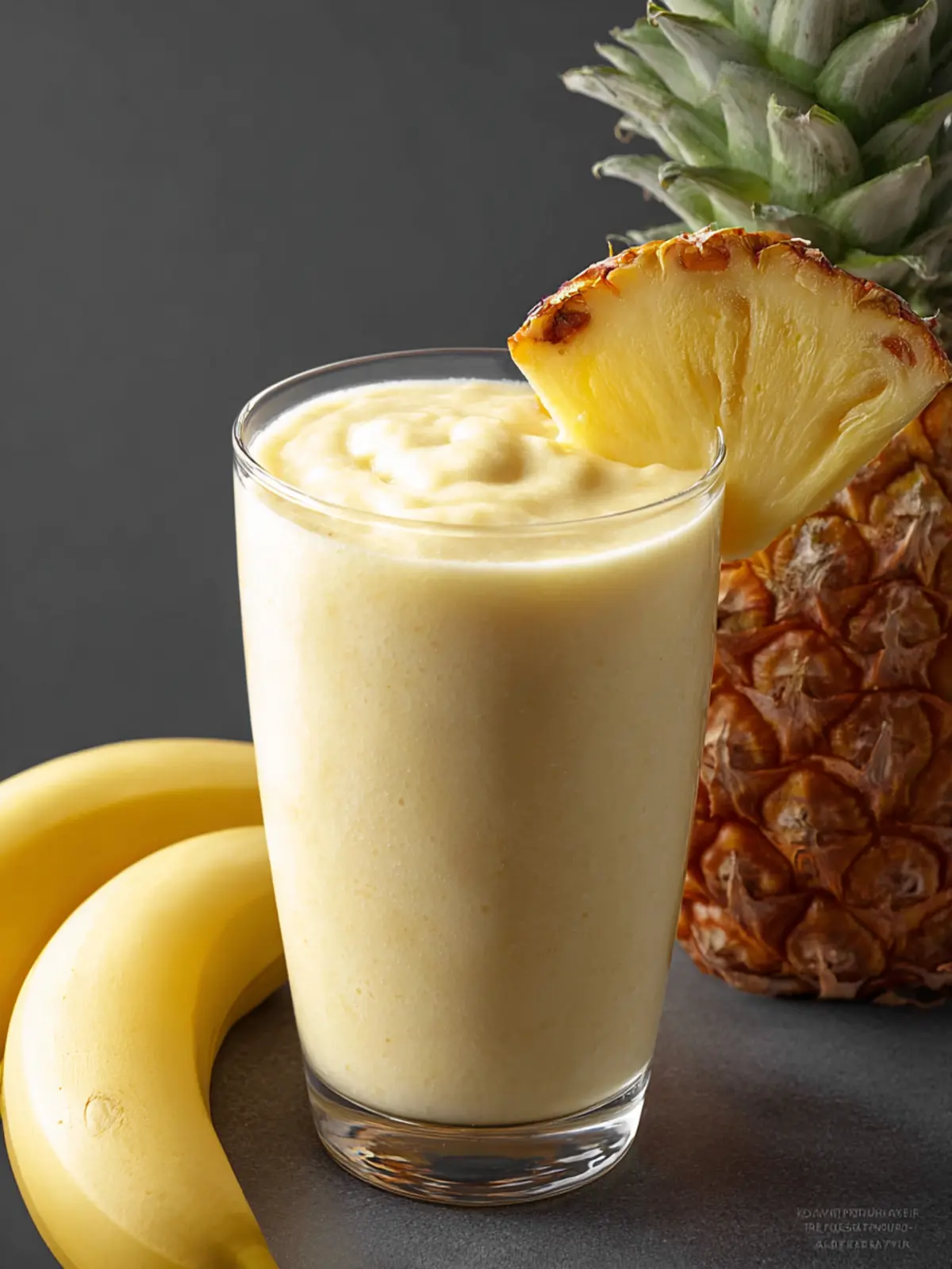 A refreshing tropical smoothie with pineapple, banana, and almond milk.