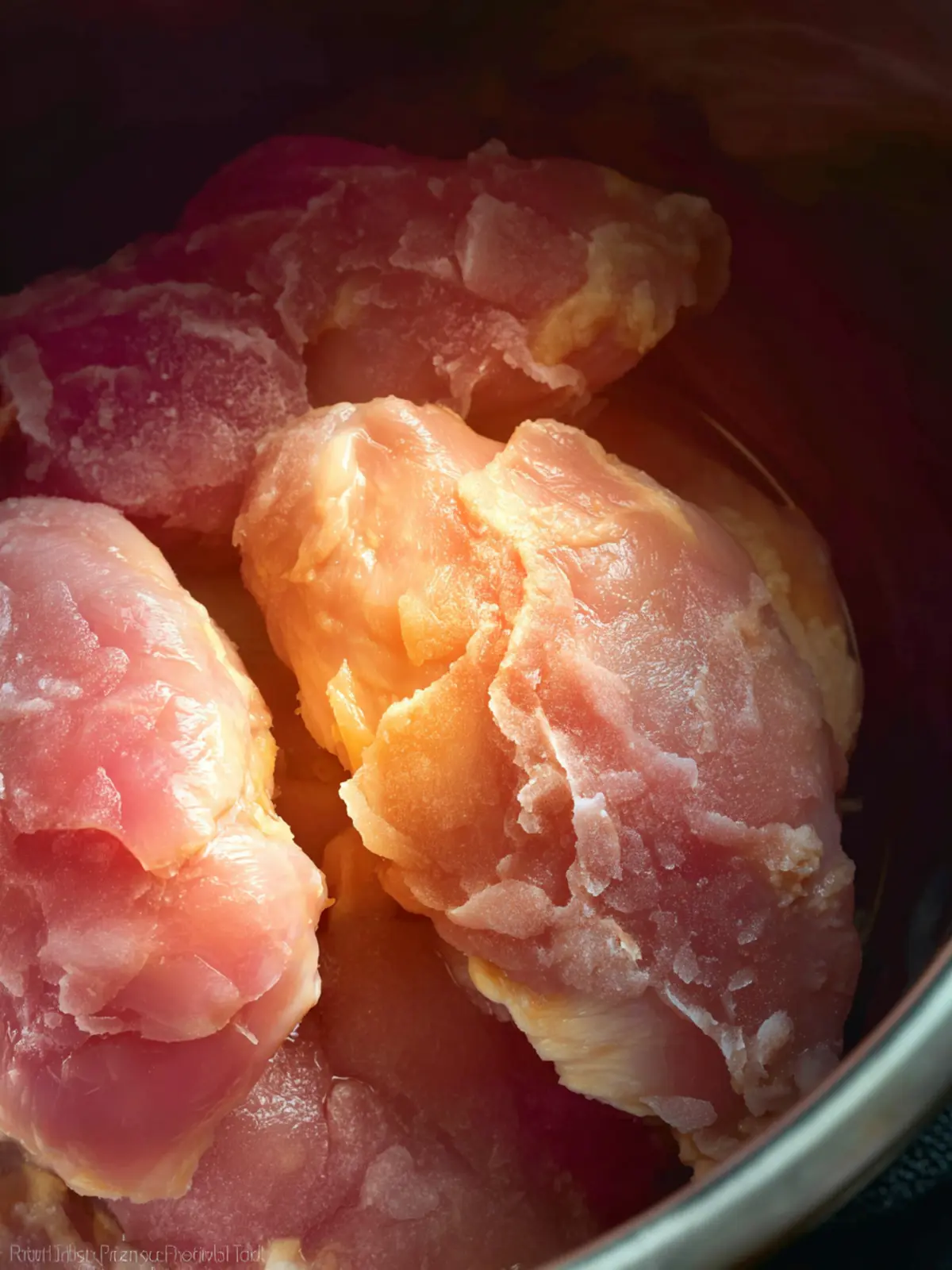 - Put frozen chicken breasts inside your Instant Pot or pressure cooker.