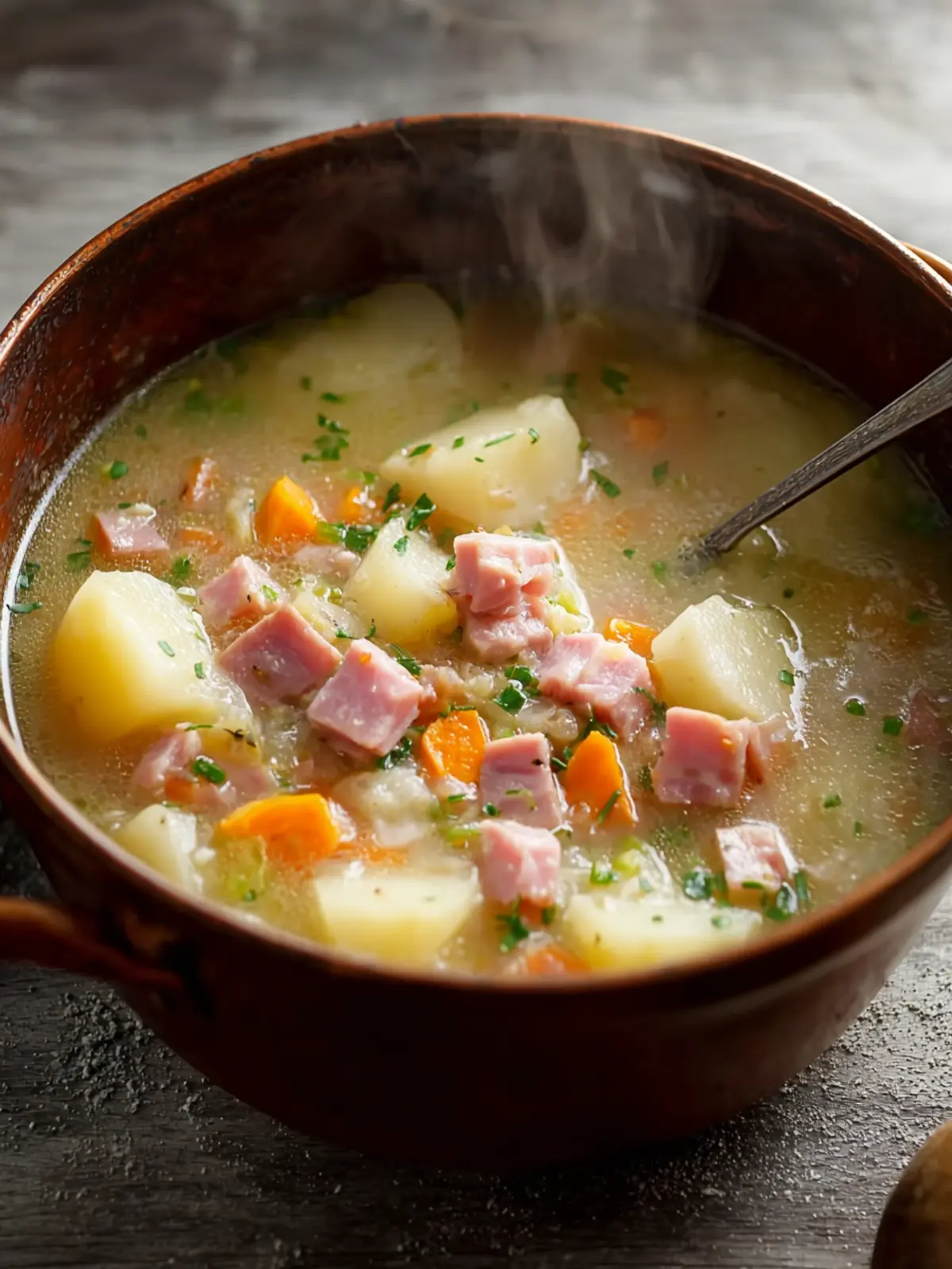 A comforting ham and vegetable soup perfect for a cozy meal.