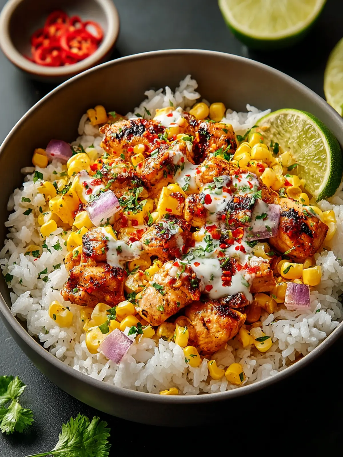 • Easy to Customize: You can easily personalize your Irresistible Street Corn Chicken Rice Bowls according to your preferences. Like it spicy? Toss in some jalapeños. Want more crunch? Add sliced radishes or a sprinkle of crispy tortilla strips on top.