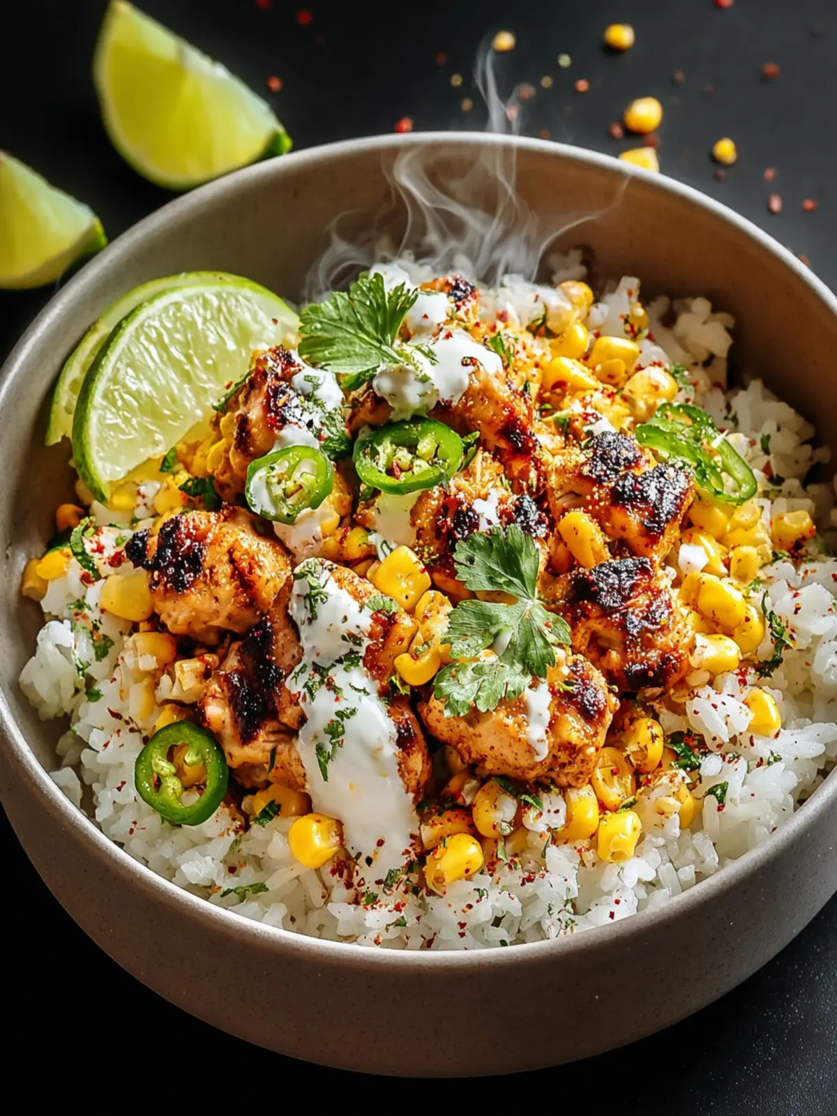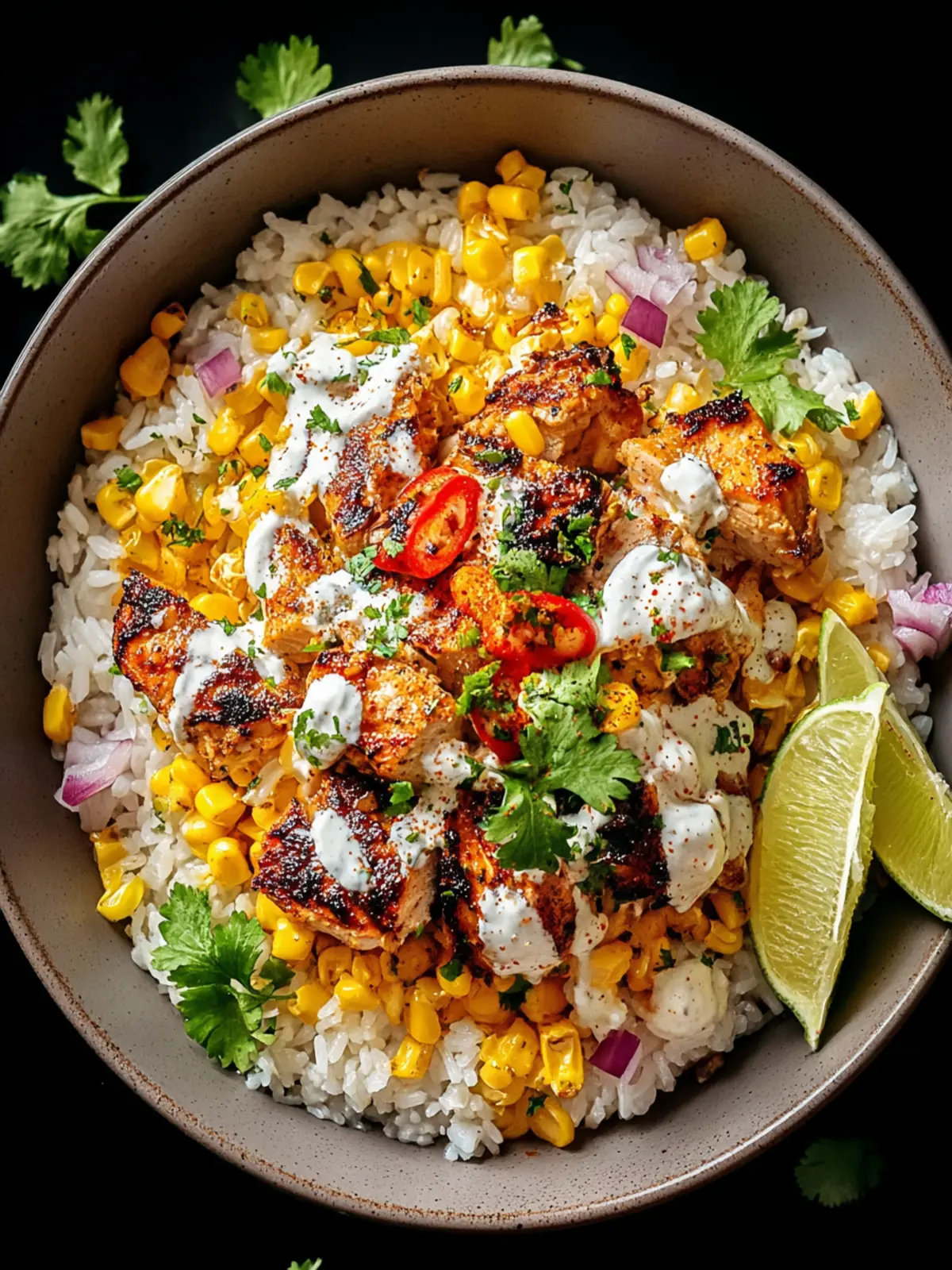 Irresistible Street Corn Chicken Rice Bowls: Juicy Flavor Escape
