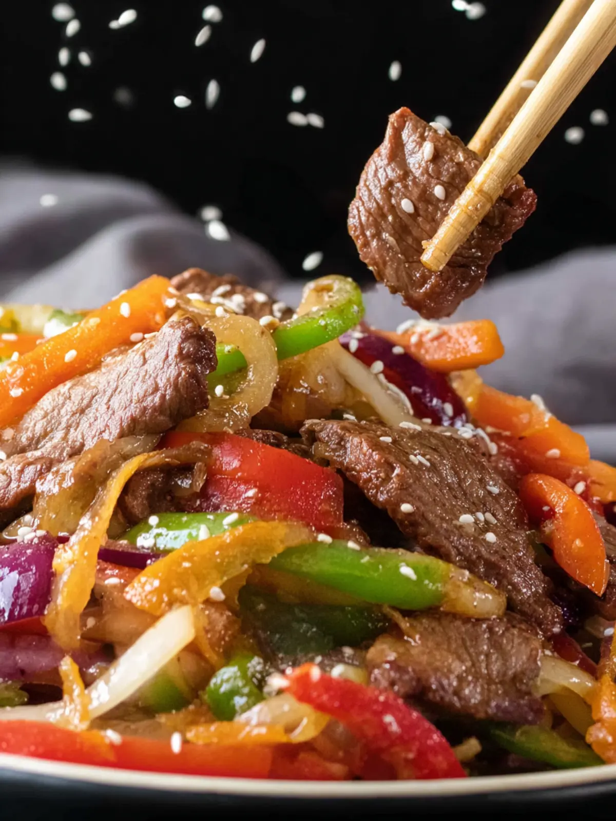A flavorful stir-fry dish featuring tender beef and colorful vegetables, perfect for a quick weeknight dinner.