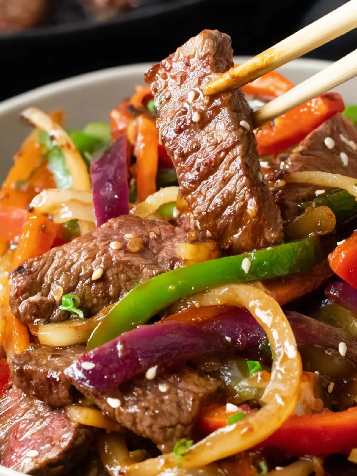 Bell Peppers: A rainbow of colors not only adds visual appeal, but the sweet crunch of bell peppers complements the savory beef perfectly. Red, yellow, and green peppers each bring their unique taste and texture.