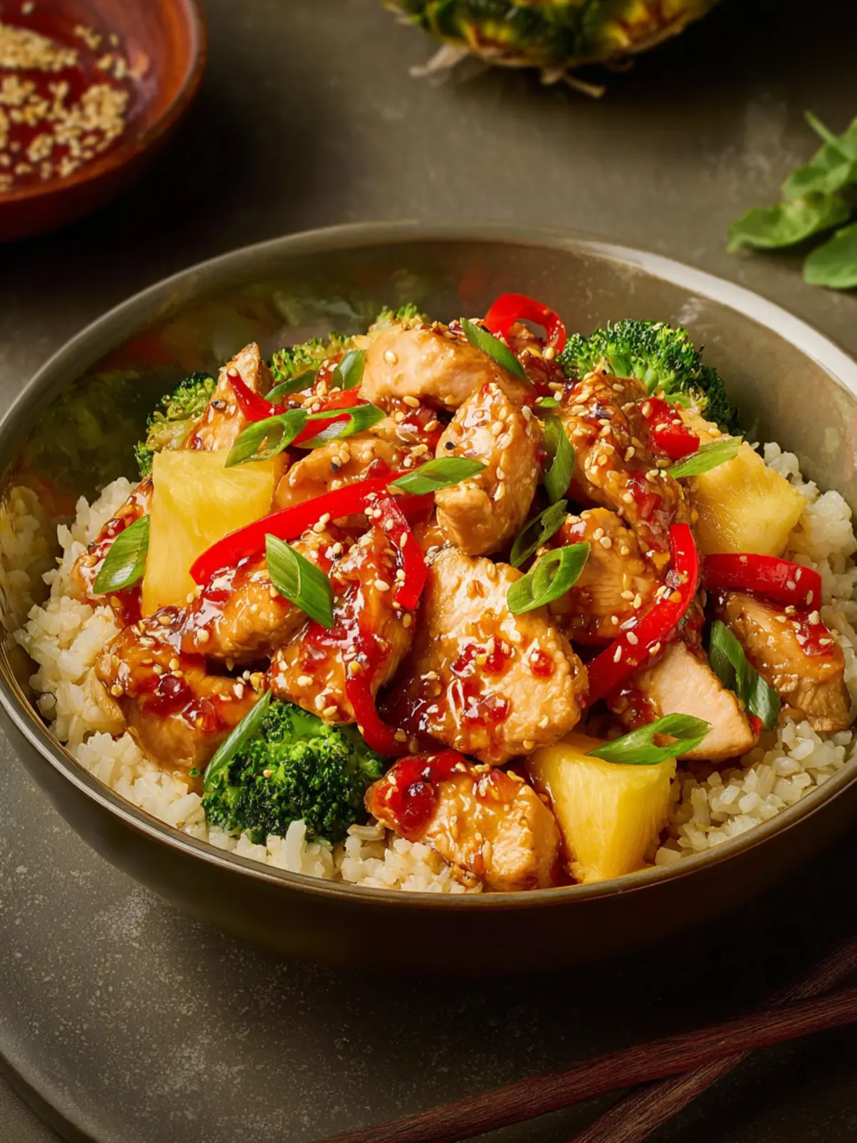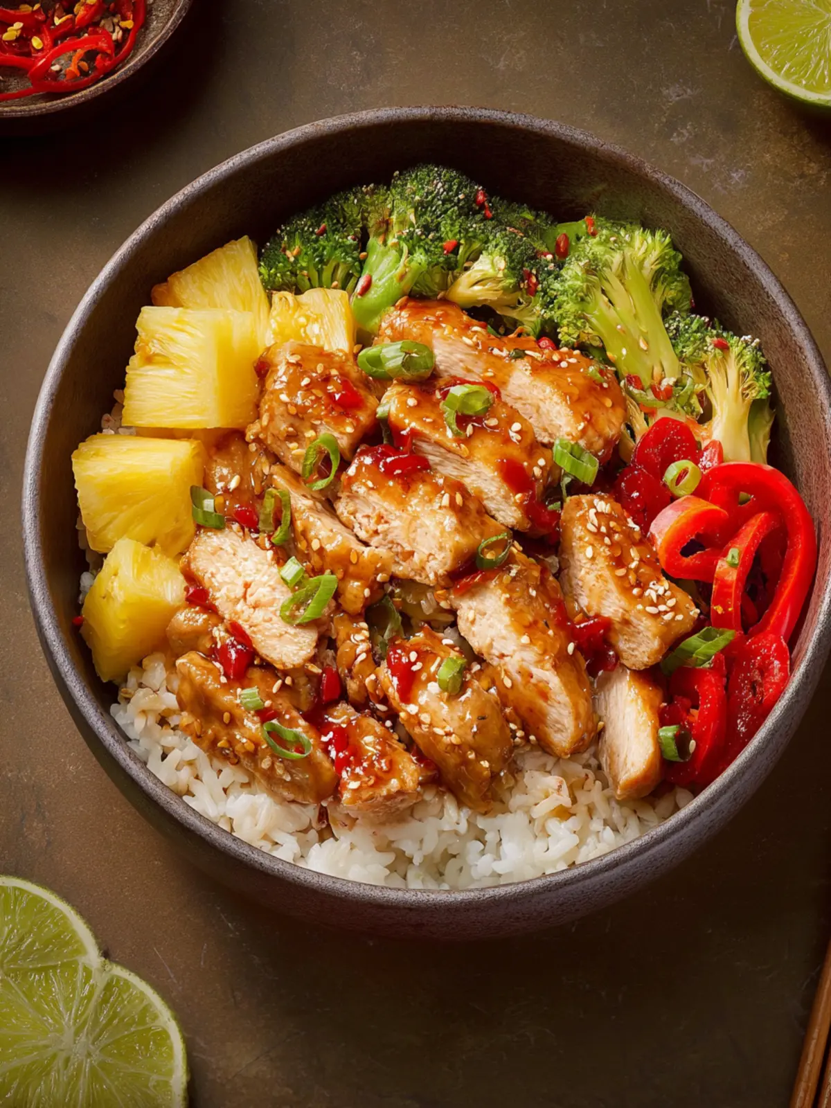Each ingredient brings its character to the pineapple chicken rice bowl, ensuring a delightful taste adventure with every bite!