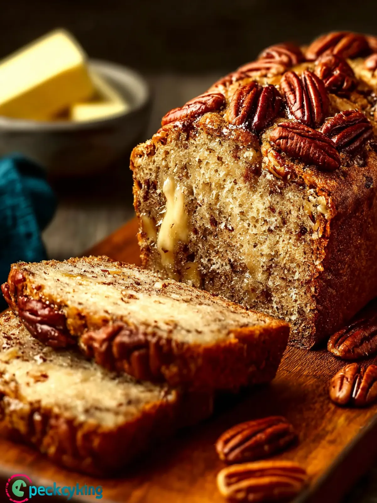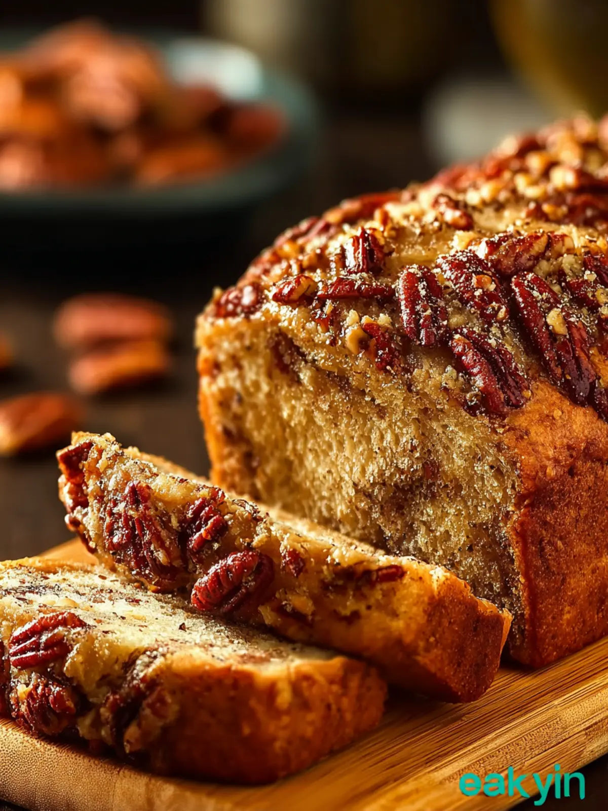 Crafted with love and care, this bread uses simple, wholesome ingredients, making it an easy choice for both novice bakers and seasoned pros. The combination of flour, sugar, butter, and eggs creates a fluffy texture, while the pecans add a satisfying crunch.