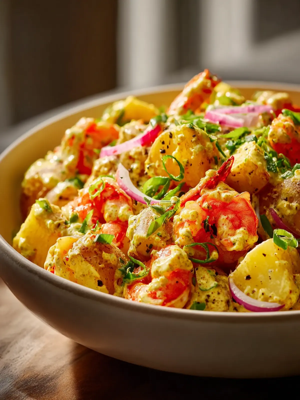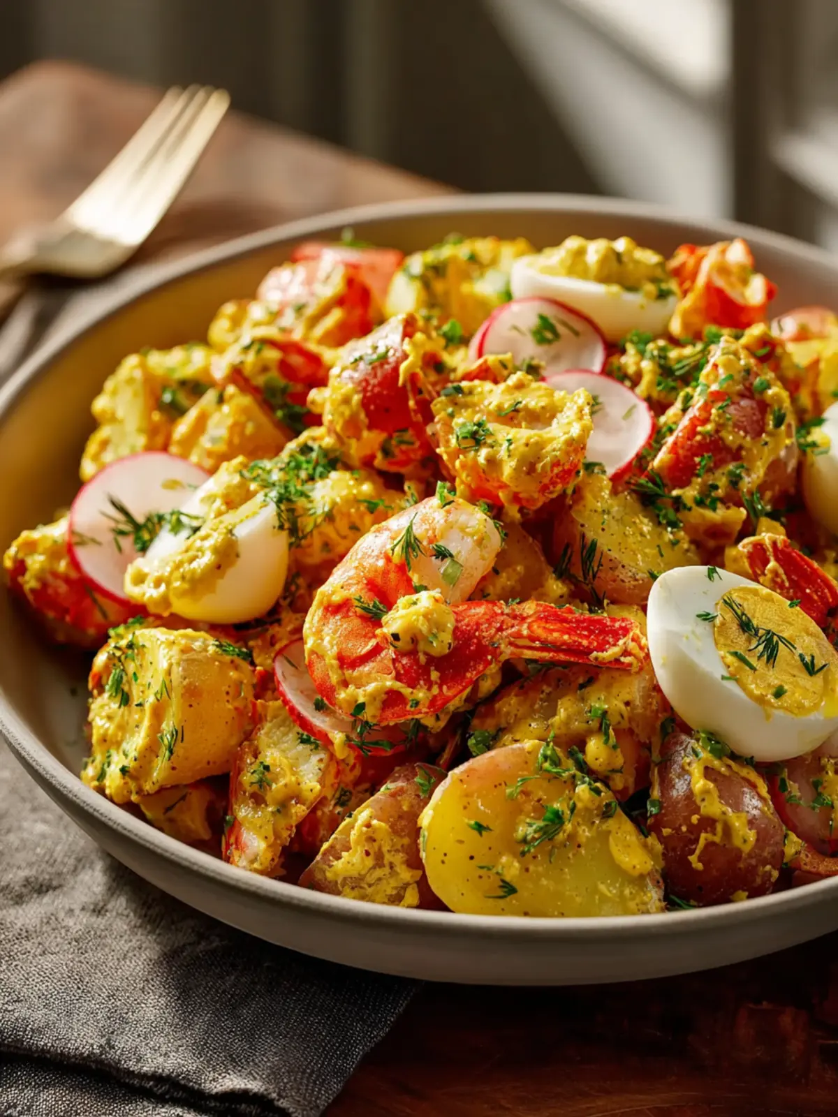 A delicious and creamy crawfish potato salad, perfect for gatherings.
